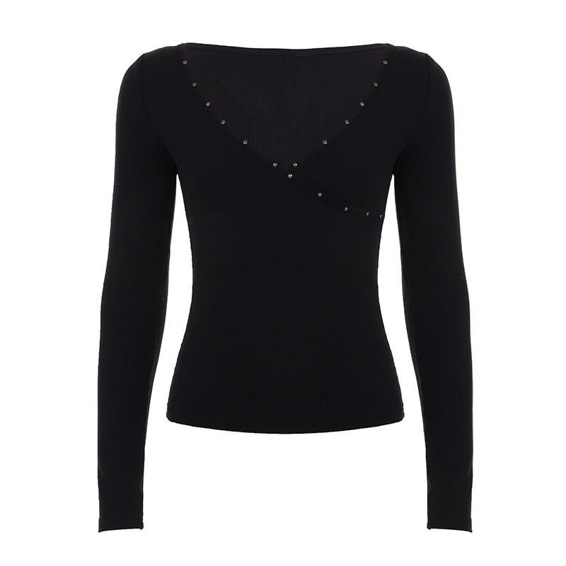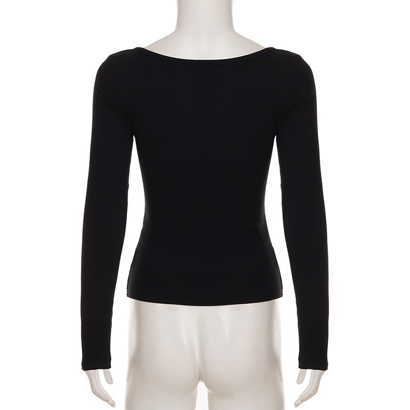 V-neck Knitted Underwear Long Sleeved Top Hot Girl New Solid Color